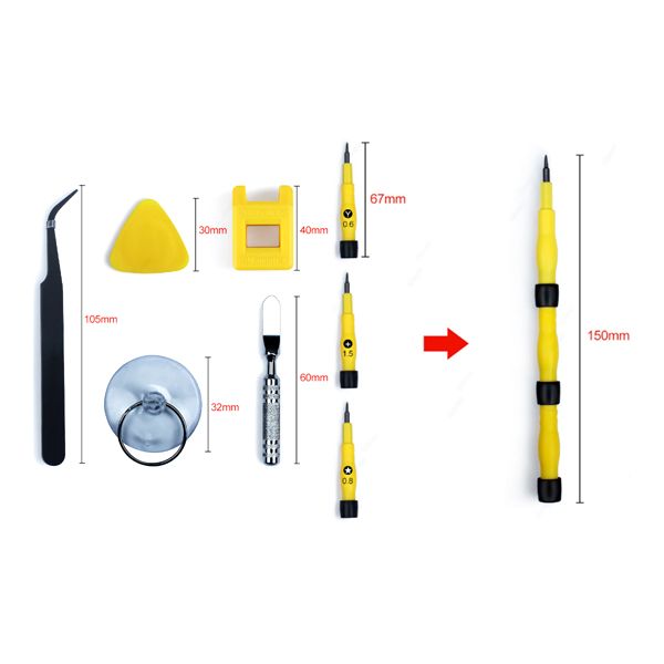 This precision tool kit includes many bits and tools used to repair various electronics. Manufactured with top quality materials, this kit has what it takes to perform precise and reliable repairs. Keep it in the car, a drawer at home, or even throw it in your luggage when traveling so you are always ready for any electronic malfunction.